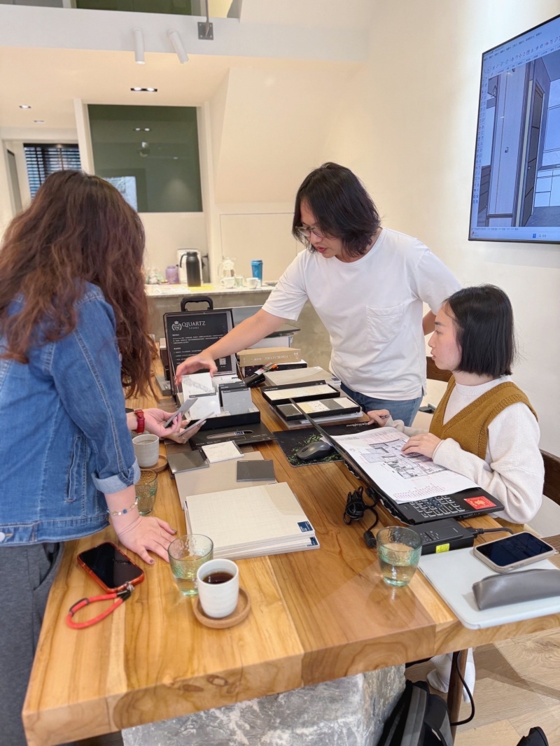 棠謙設計師在工地裡進進出出,提供完整施工圖面,清楚交代每一個細節,對業主也是對每個師傅們的責任與保障。